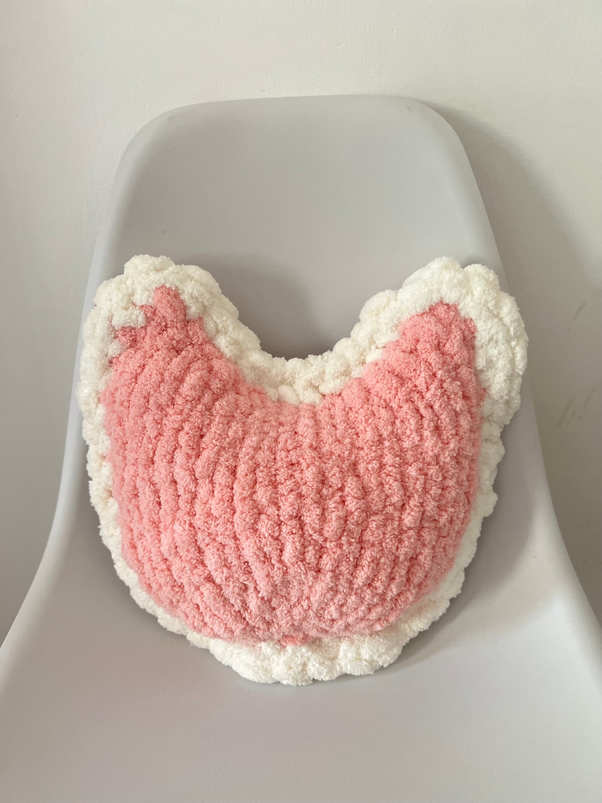 A soft, handcrafted heart pillow in delicate blush pink, finished with a fluffy ivory border for a cozy, cloud-like feel, this piece is perfect for adding warmth and charm to any space. Made with plush chunky yarn, it’s both decorative and comforting a heartfelt accent for beds, sofas, or gifting moments.